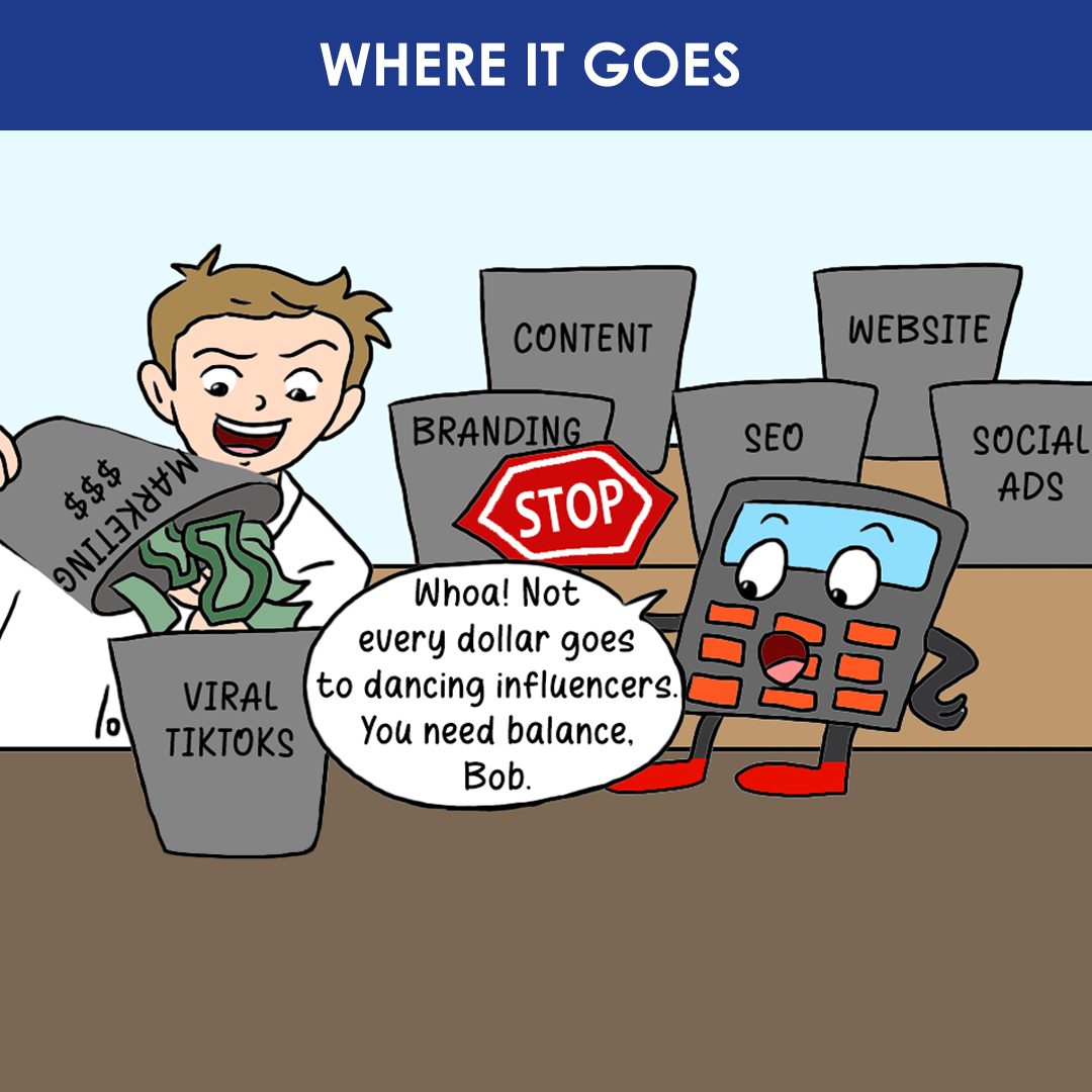 Most businesses allocate a percentage of their revenue toward marketing. Here’s a general breakdown: